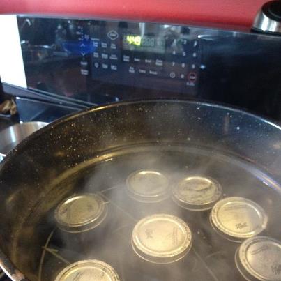 Wipe the rim and screw band with a warm wash cloth prior to adding the lids and rings. Hand tighten rings. Process is a hot water bath for 10 minutes. Remember, processing time does not